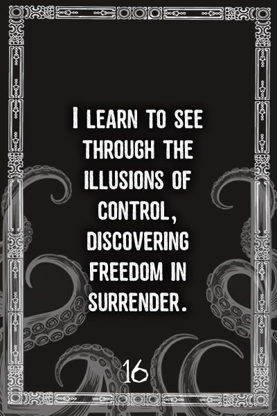 Below you will find the digital 50-card Cthulu Affirmation Deck filled with 33 ego-taming and fear-halting affirmations along with 17 potent symbol cards to enhance your experience. The interpretations are up to you.